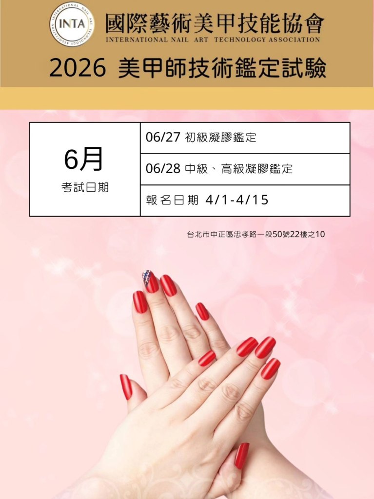 2026 年度 INTA 美甲能力鑑定時間