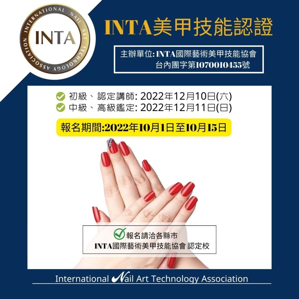 此鑑定認證是由INTA國際藝術美甲技能協會主辦發證,本會是經過內政部核准立案
