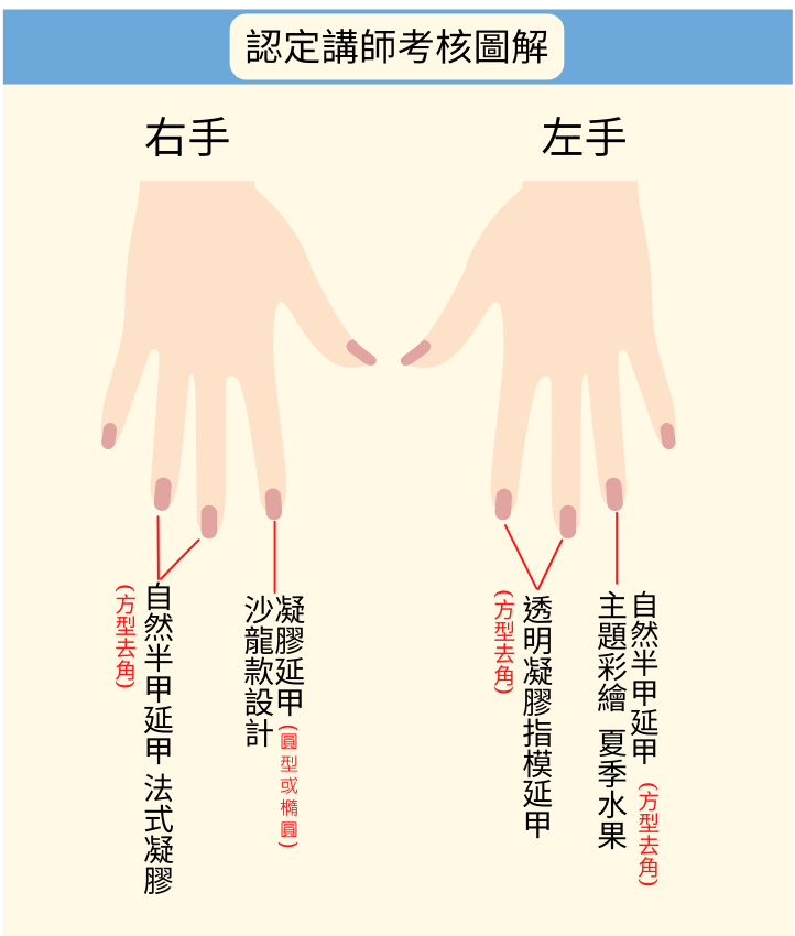 ❗測驗過程使用之凝膠產品、工具等必須是本協會指定產品方可使用,如違者一律失格。