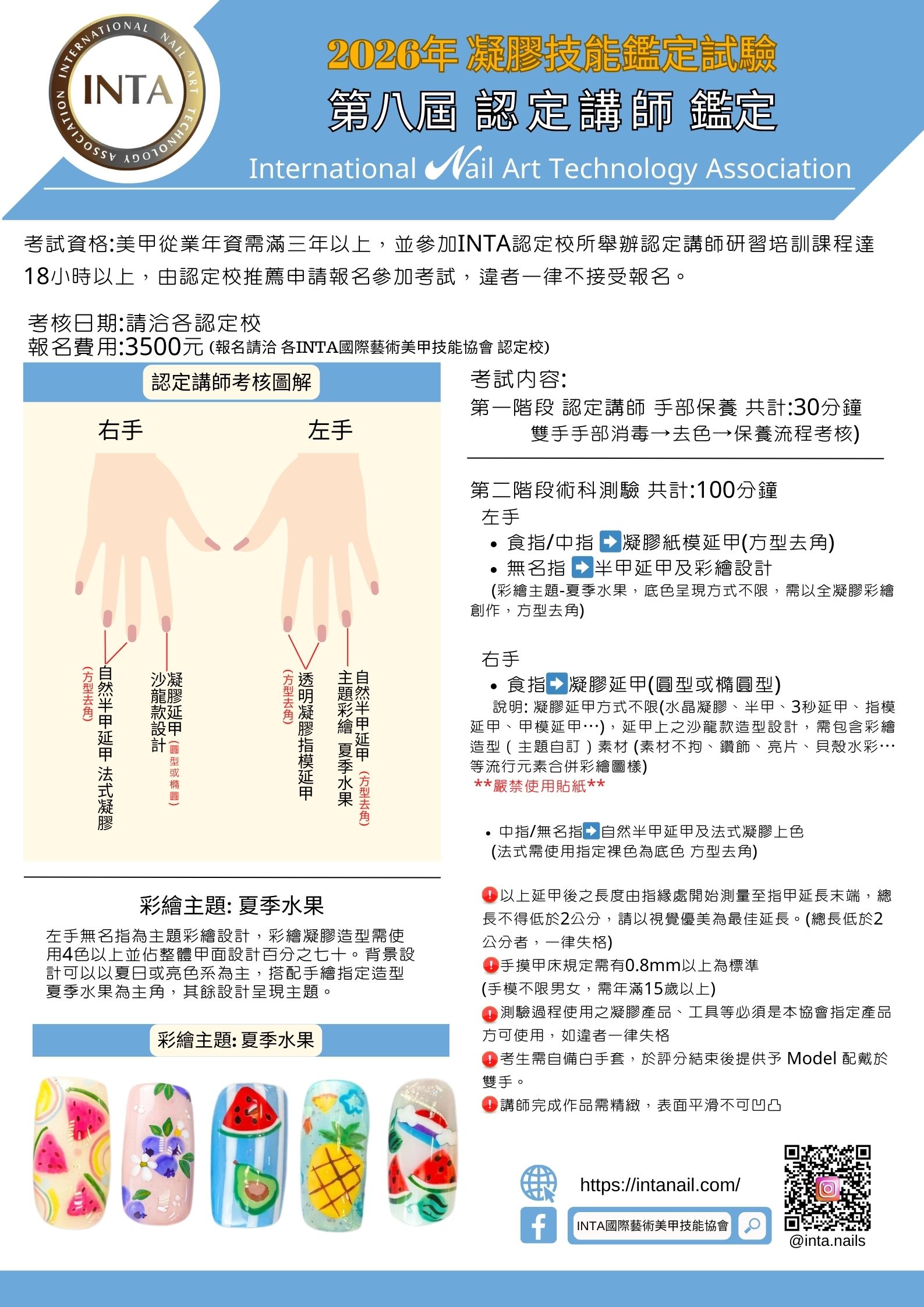 2026年 第八屆 INTA 認定講師能力鑑定考核時間