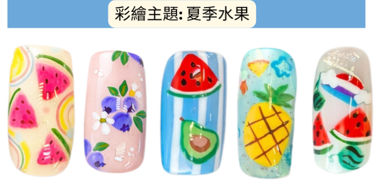 (彩繪主題-夏季水果、底色呈現方式已夏季鮮明色調為主,需以全凝膠 彩繪創作,方型去角)